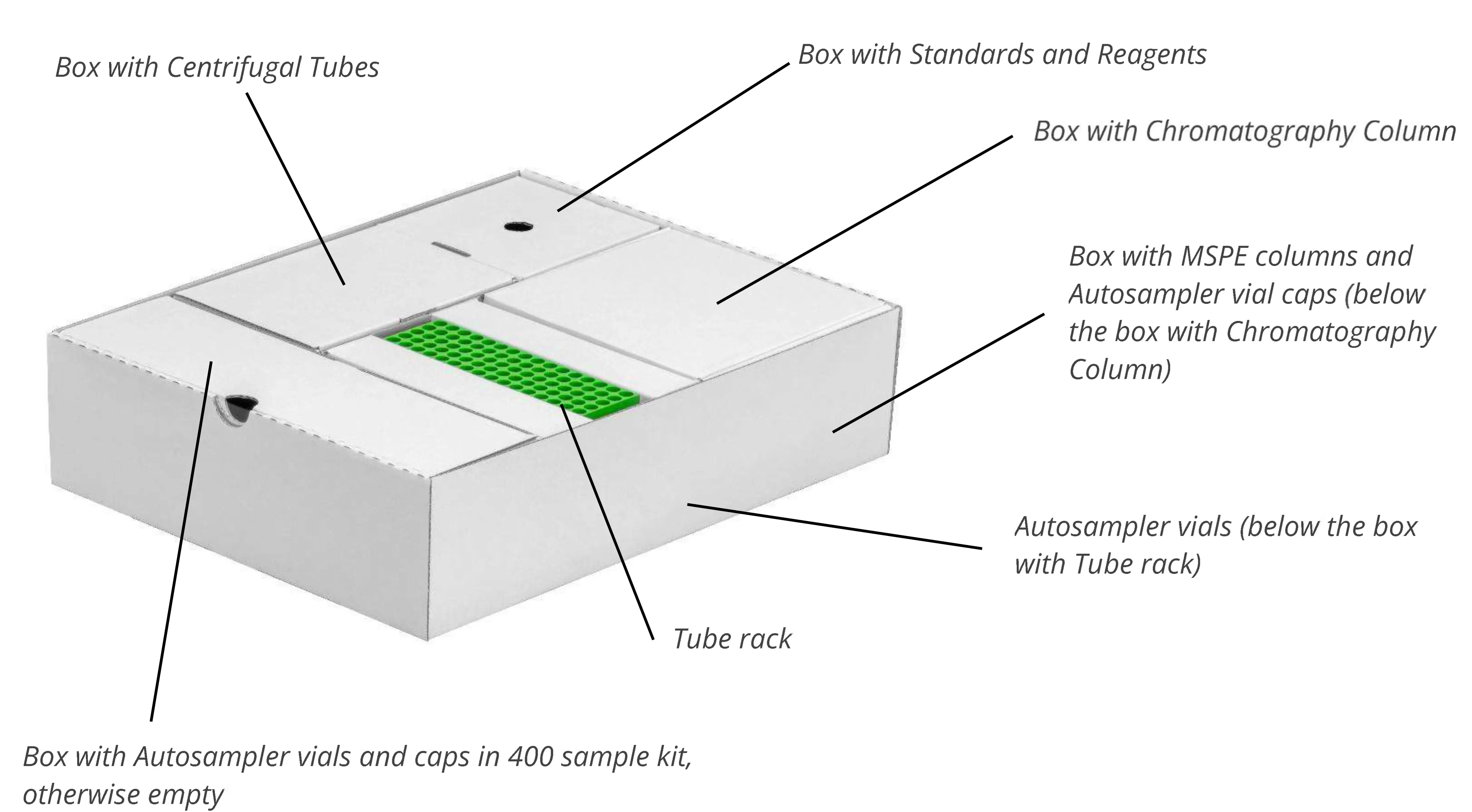 Im mitgelieferten Probenvorbereitungsprotokoll sind alle Schritte übersichtlich beschrieben. Zunächst werden mithilfe eines Fällungsreagenzes Schwebstoffe und Salze aus der Probe entfernt. Anschließend werden protische funktionelle Gruppen der Analyten durch Zugabe einer Derivatisierungsreagenz in unpolare Derivate umgewandelt. Die aufbereitete Probe wird anschließend auf eine vorbereitete Magnetic Solid Phase Extraction (MSPE)-Zentrifugationssäule überführt, wobei die Analyten selektiv auf dem Adsorptionsfilter gezielt gebunden werden. Nach dem Waschvorgang der Probe erfolgt die Elution mit dem mitgelieferten Elutionsmedium, wobei das Eluat direkt injektionsfertig für die LC/MS-Analyse ist. Die Probenvorbereitung kann gemäß Protokoll in weniger als 15 Minuten pro einzelne Probe durchgeführt werden. Bei paralleler Bearbeitung mehrerer Proben lässt sich der Zeitaufwand zusätzlich weiter reduzieren.