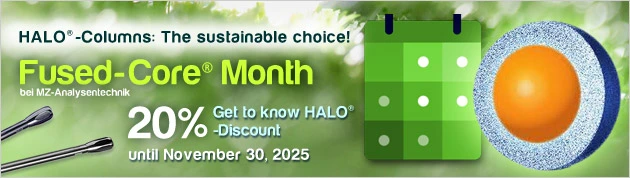 HALO® is a series of (U)HPLC columns based on the core-shell (FusedCoreâ„¢) technology. The manufacturer of these columns is Advanced Materials Technologyâ„¢ (AMT), whose founders was outstanding pioneers from the field of high-performance liquid chromatography. AMT is the genuine developer and producer of of packing materials with FusedCoreâ„¢ technology. The silica-based stationary phases consist of a non-porous core and an porous outer layer, that provides fast separations without excessive backpressure. HALO® columns are available in different particle sizes: 2 μm (core: 1.2 μm), 2.7 μm (core: 1.7 μm), 3.4 μm (only HALO® Protein columns, core: 3.0 μm) and 4.6 μm (core: 3.3 μm) and with  various modifications that cover a wide selectivity range. HALO® Bioclass columns have been specially designed for the separation of biomolecules such as proteins, peptides or glycans. HALO® Enviroclass columns are designed for environmental analysis.